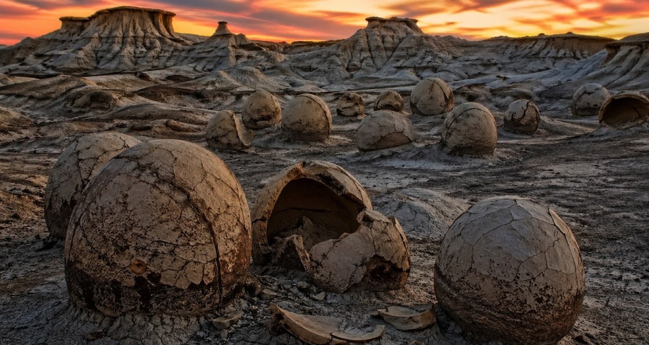 Çorak bir arazide yer alan ilginç yapılar, ilk bakışta birer yumurtayı andırarak görenlerin dikkatini çekiyor. Yuvarlak ve çatlak görünümlü bu taşlar, bazıları kırılmış izlenimi verdiği için “içinden bir şey çıkmış” hissi yaratıyor. Bu nedenle, bölge ziyaretçiler tarafından uzun zamandır gizemli bir alan olarak anılıyor. Ancak bu etkileyici manzaranın arkasında yatan gerçek oldukça bilimsel. Uzmanlar, bu ilginç oluşumların milyonlarca yıl süren erozyon ve tortul kaya süreçlerinin bir sonucu olduğunu ifade ediyor. Rüzgar, yağmur ve zamanın etkisiyle şekillenen bu kayalar, günümüzdeki sıra dışı formunu almış durumda.
