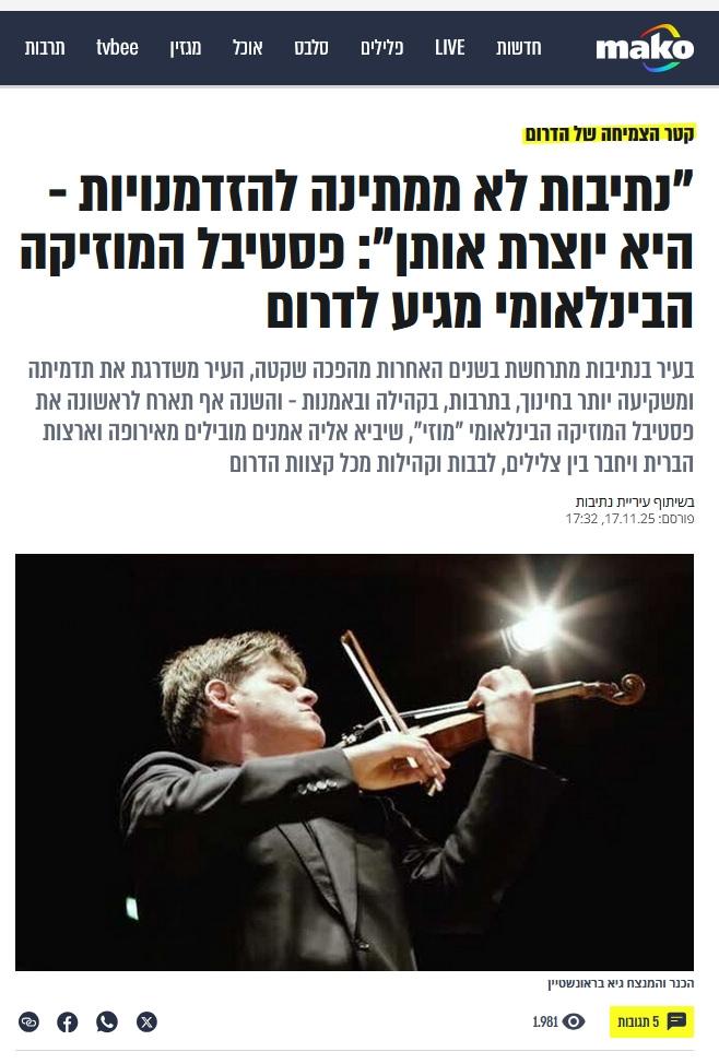 İsrail merkezli haber ve eğlence portalı Mako’da yer alan habere göre, Netivot Belediye Konservatuarı Müdürü Shmuel Elbaz, Gazze’nin hemen yakınında gerçekleştirilecek müzik festivalini “derin bir hamle” olarak nitelendirdi. Elbaz, “Bu festival sadece müzikal etkinlik olarak değil, çok daha derin bir hamlenin ifadesi” dedi.